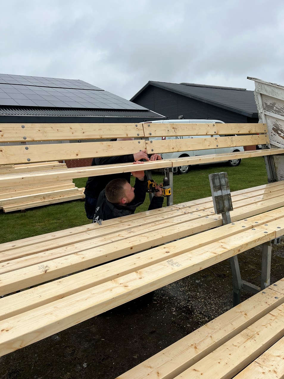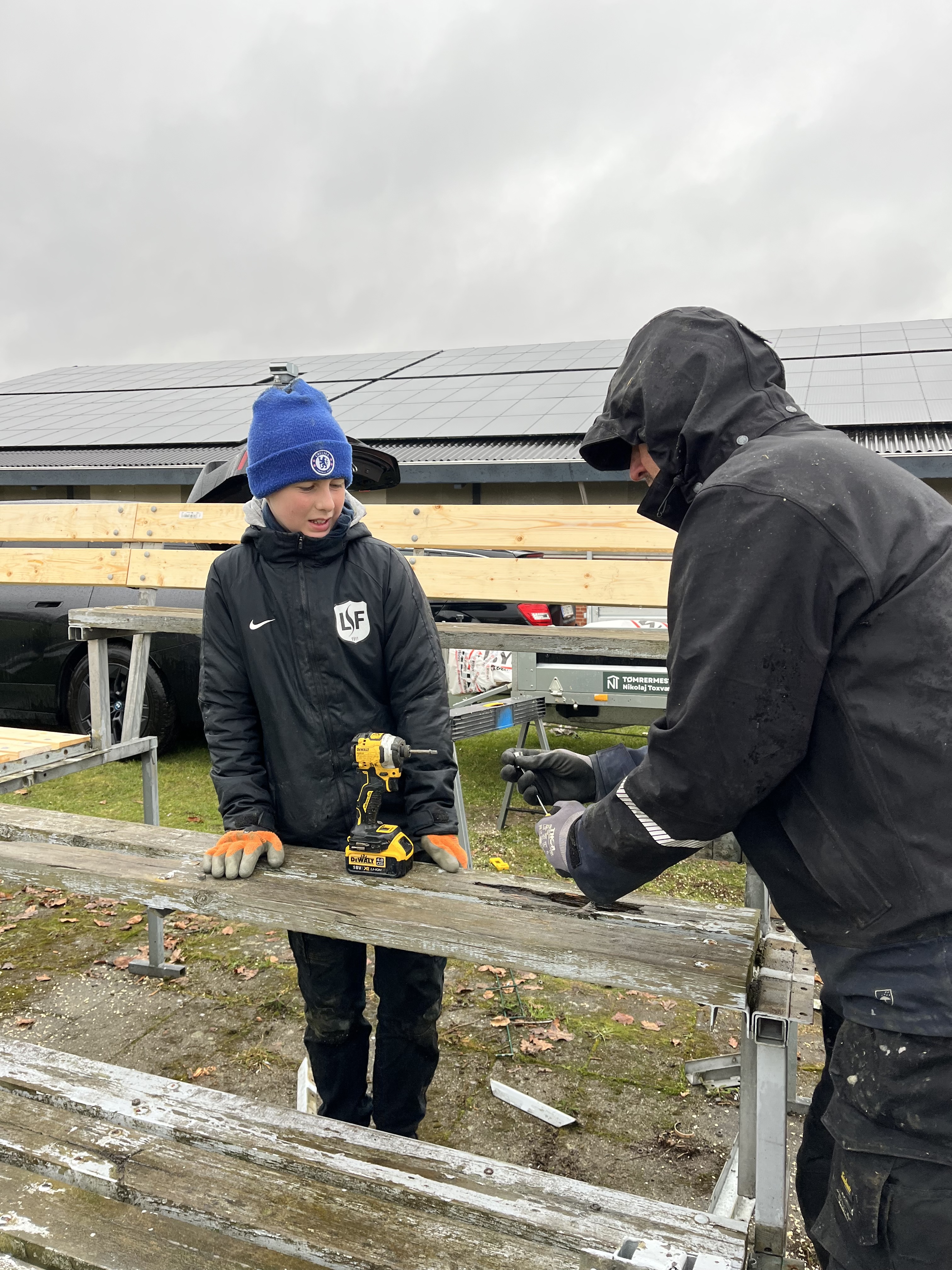 Succesen med en arbejdsdag blev gentaget i år. Vejret var ikke med os, men der blev stadig taget fra og de to projekter med istandsættelse af tribune og opførsel af nyt bold- og materialerum kom godt fra land.
