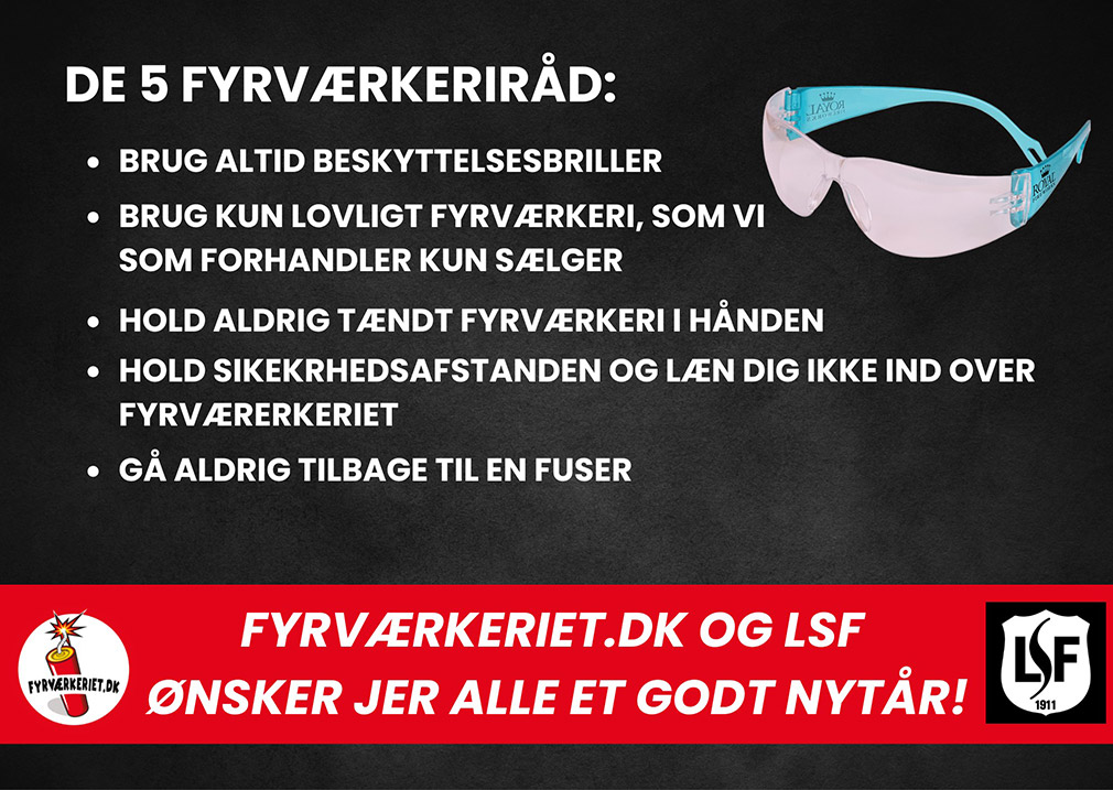 LSF har netop indgået et spændende samarbejde med Fyrværkeriet.dk i Veksø, som vi er sikre på, at I vil få glæde af. Dette samarbejde giver jer ikke kun muligheden for at skyde nytåret ind med stil, men også for at støtte vores klub på samme tid.
