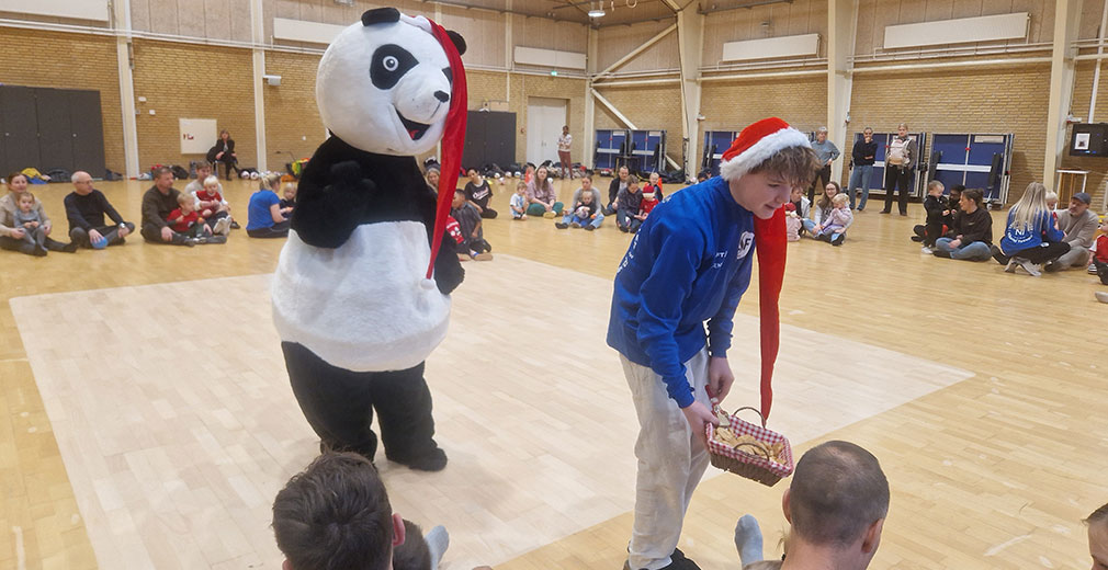 Pandaholdet afholdte i dag deres juleafslutning og sikke en fest de fik lavet. Hallen var pakket med glade børn og forældre og stor var jubelen, da Panda kom forbi med kurven fyldt med julekager og Clementiner.